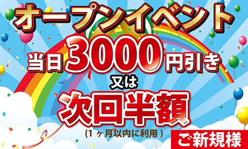 いつもご利用いただきありがとうございます。 このたび当店では、口コミ投稿で次回ご利用時に最大2,000円割引のキャンペーンをスタートいたしました! ご利用後に、 指定の2つのサイトへ口コミをご投稿いただくだ […]
