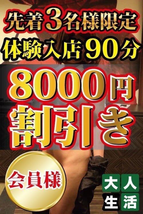 体験入店時3名様に限り、体験割引の特別価格でご案内♪♪